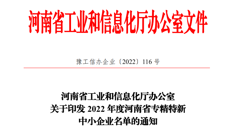 6月20日,河南省工業(yè)和信息化廳發(fā)布通知,河南弘康環(huán)??萍加邢薰緲s膺2022年度河南省“專精特新”中小企業(yè)。 “專精特新”企業(yè)是指做到專業(yè)化…